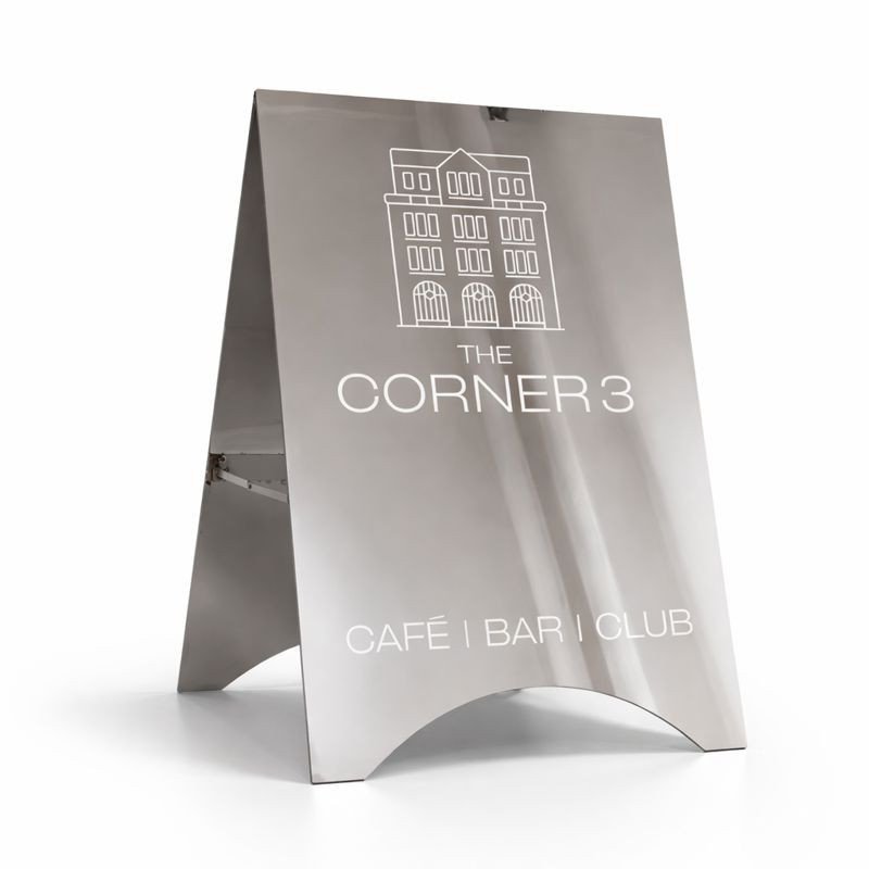 Dank der stabilen A-Frame-Konstruktion steht der Kundenstopper sicher und eignet sich für den täglichen Einsatz vor Cafés, Bars, Restaurants oder Concept Stores.
